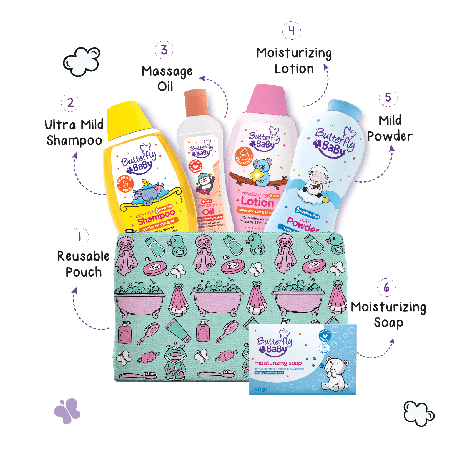 Packed with Butterfly Baby essentials: